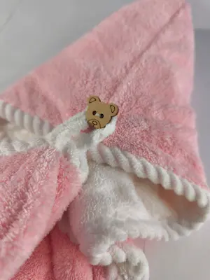 Designed to stay in place effortlessly, this towel wraps securely around your head, allowing you to move freely while it works its magic. A charming bear detail adds an extra touch of elegance.